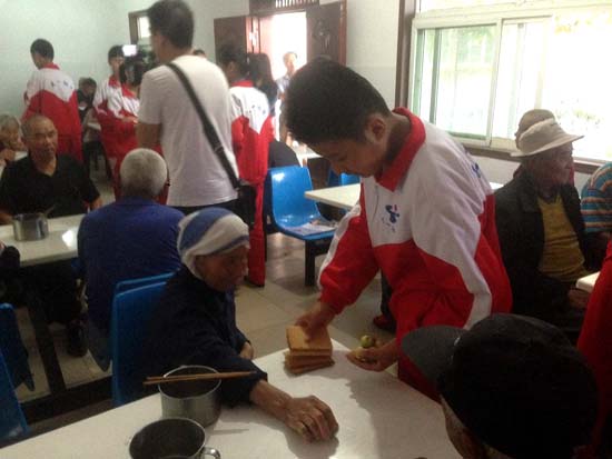 每逢佳節到來之際,淮北天一初中學生志愿者就會在校長郭光梅組織下去敬老院看望老人,陪老人一起過節,談心。今年九九重陽節即將到來,又是一年一度的尊老敬老的節日。2014926,淮北天一初中的三十名師生在常務副校長陳一中帶領下驅車來到淮北市相山區敬老院,來到老人身邊,同老人們交流慰問。同學們向爺爺奶奶匯報了自己的成績和表現,了解老人們的心理和困難,帶來了水果、糕點等禮物送給爺爺奶奶,并幫助爺爺奶奶打掃宿舍衛生 ,整理房間,還與他們促膝談心,給老奶奶梳頭,讓所有在場的人都為之感動。