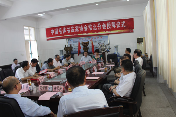 2016910號上午10時,中國毛體書法家協(xié)會執(zhí)行主席張琳、淮北市原市委書記王成法、淮北市原市委秘書長楊海、天象集團董事長孔令發(fā)等人參加了中國毛體書法家協(xié)會淮北分會揭牌儀式。中國毛體書法家協(xié)會淮北分會的成立填補了淮北書畫文藝界的一大空白。