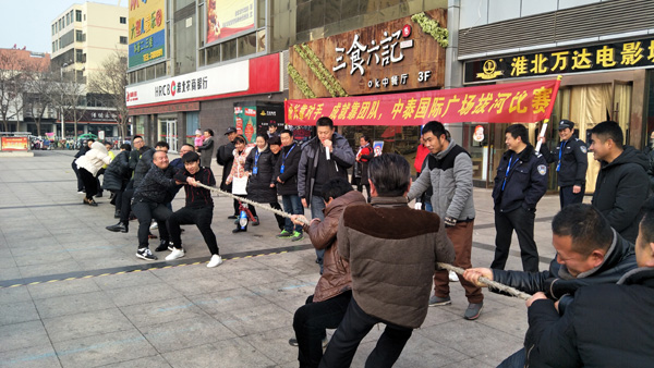 2017年12月28日, 中泰商管公司組織商管全體員工及中泰商戶代表、恒東物業(yè)代表在廣場(chǎng)舉行迎新年拔河聯(lián)誼比賽。比賽本著“友誼第一,比賽第二”的精神,發(fā)揚(yáng)了“友誼、團(tuán)結(jié)、公平競(jìng)爭(zhēng)”的體育精神。