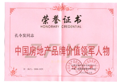 2008年孔令發(fā)董事長獲評中國房地產(chǎn)品牌領軍人物